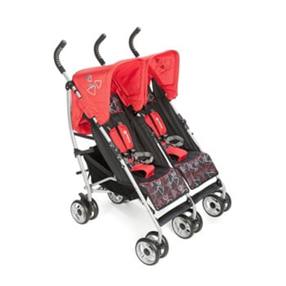 Confortável para as crianças com 2 assentos individuais e múltiplas posições de reclínio independentes, apoio para os pés com 7 posições e manoplas ergonômicas.