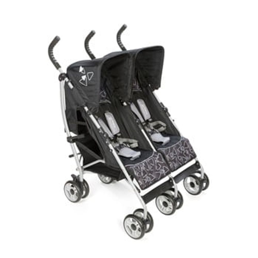 Confortável para as crianças com 2 assentos individuais e múltiplas posições de reclínio independentes, apoio para os pés com 7 posições e manoplas ergonômicas.