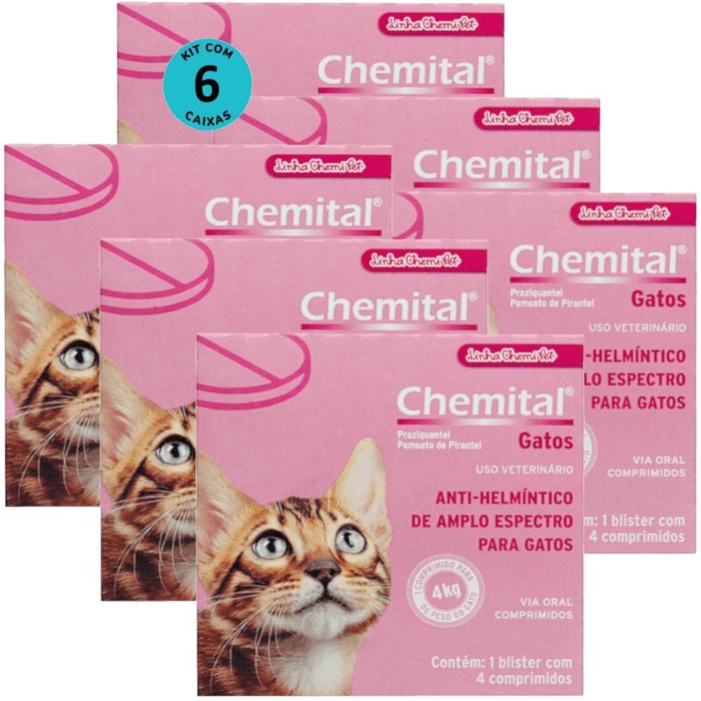 Chemital Com 4 Comprimidos Chemitec Vermífugo Para Gatos Kit Com 6 Cx