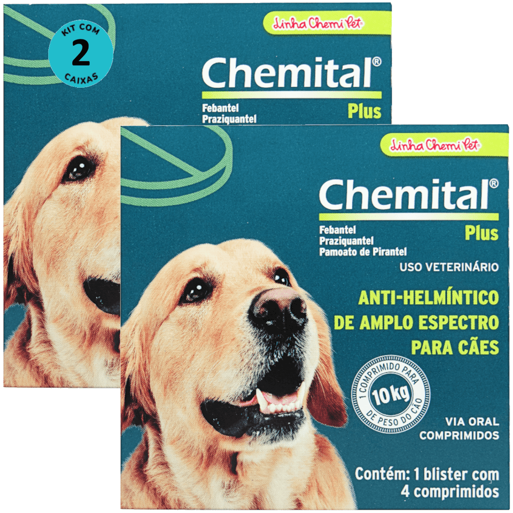 Chemital Plus Com 4 Comprimidos Chemitec Vermífugo Para Cães Kit Com 2 Cx