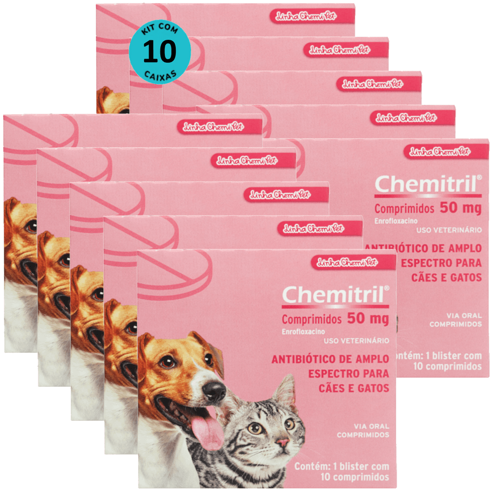 Chemitril 50mg Com 10 Comprimidos Para Cães e Gatos Chemitec Kit Com 10