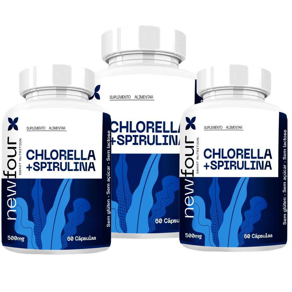 CHLORELLA + SPIRULINA KIT COM 3 POTES COM TOTAL DE 180 CAPSULAS