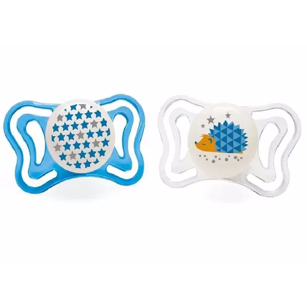 Chupeta de Silicone Physio Light Lumi 16 a 36 meses 2 Unidades Chicco Branco e Azul