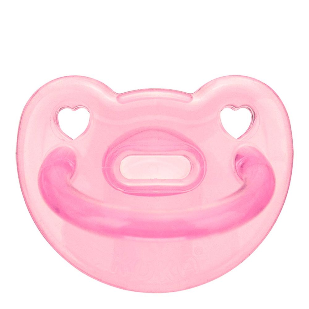 Chupeta Kuka Soft Silicone Rosa, Tamanho 2, possui bico de silicone macio e escudo arredondado que se adapta ao nariz e boca sem interferir na respiração. Seu design conta ainda com orifícios de ventilação que evitam o acúmulo de saliva e assaduras na região dos lábios.