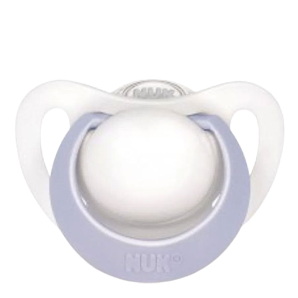 A Chupeta Nuk Genius Azul, Tamanho S1, foi desenvolvida em silicone e plástico. Seu bico, de topo curvo, se adapta perfeitamente ao palato e a base angular proporciona um correto posicionamento da língua. O escudo possui aberturas que facilitam a ventilação.