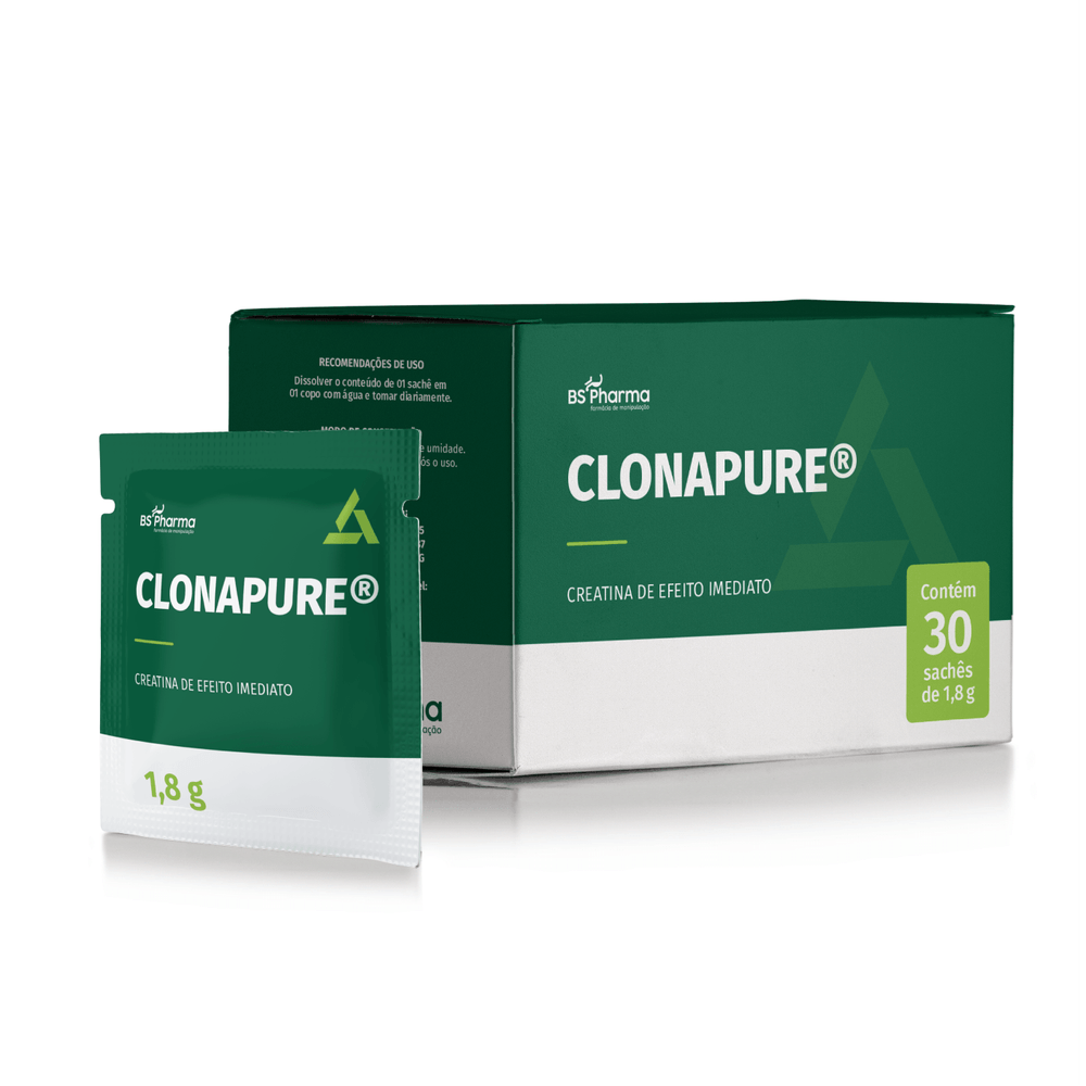 Clonapure® é um complexo trimolecular de creatina projetado para fornecer suporte imediato ao sistema fosfagênico, responsável pela produção de energia para atividades diárias, funções metabólicas, cognitivas e neuroprotetoras. Este suplemento é uma revolução no campo da creatina, oferecendo uma absorção mais rápida e eficiente em comparação com a creatina convencional.O Que É Clonapure®?Clonapure® é uma combinação de creatina monohidratada, fosfocreatina e fosfato, projetada para manter o sistema fosfagênico funcionando de maneira otimizada. O sistema fosfagênico, também conhecido como sistema ATP-CP, é crucial para fornecer energia rápida aos músculos durante exercícios de alta intensidade e curta duração. A tecnologia utilizada no Clonapure® permite uma saturação celular 20 vezes mais rápida e um aumento de 70% na eficiência da síntese de ATP.Benefícios do Clonapure®Efeito Imediato: Diferente da creatina convencional, que requer uma fase de saturação, Clonapure® começa a fazer efeito logo na primeira dose. Isso significa que você pode sentir os benefícios de forma imediata, sem a necessidade de um período de carregamento.Aumento da Produção de Energia (ATP): Clonapure® aumenta a produção de ATP em até 70%, proporcionando mais energia para atividades físicas e mentais. Isso é especialmente benéfico para atletas e pessoas que praticam exercícios de alta intensidade.Melhora do Desempenho Físico e Mental: Com a maior disponibilidade de ATP, Clonapure® ajuda a melhorar o desempenho físico e mental em tempo real. Isso inclui maior força muscular, resistência e capacidade de recuperação após exercícios intensos.Neuroproteção e Saúde Cognitiva: A creatina é conhecida por seus benefícios neuroprotetores e pela melhora da função cognitiva. Clonapure® pode ajudar a proteger o cérebro contra danos e melhorar a memória e a cognição.Sem Necessidade de Fase de Saturação: A creatina convencional geralmente requer uma fase de saturação, onde doses maiores são tomadas inicialmente para saturar os músculos. Com Clonapure®, essa fase não é necessária, tornando o uso mais conveniente e eficaz.Absorção Rápida e Eficiente: A tecnologia utilizada no Clonapure® permite uma absorção até 20 vezes mais rápida que a creatina convencional. Isso garante que os benefícios sejam sentidos de forma mais rápida e eficiente.Apresentação: Pó.;Recomendações de uso: Ingerir uma dose de CLONAPURE® ao dia (mínimo de 1,8 g/dia ou de acordo com a finalidade proposta pelo profissional da saúde). Diluir em água.;Composição: Clonapure 1,8 gramas. NÃO CONTÉM AÇÚCAR. NÃO CONTÉM GLÚTEN. NÃO CONTÉM LACTOSE.;Validade: 06 meses após data de manipulação.;Registro MS: Armazenar protegido de luz, calor e umidade. Manter a embalagem fechada após o uso.;Embalagem: Caixa sache com 30 envelopes.;Requisitos de segurança: Gestantes, lactantes, crianças e portadores de alguma enfermidade devem sempre ser orientados pelos seus prescritores antes de fazer uso de qualquer substância. *Imagem meramente ilustrativa.*;