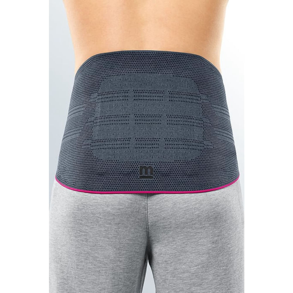 Vantagens do produto Estabilização da área da coluna lombar e da transição lombossacral por meio de 4 reforços dorsais de mola integrados Redução da lordose da coluna lombar por meio de compressão proprioceptiva na área abdominal Como funciona?/Mecanismo de ação Por favor, note que o ajuste inicial deve ser supervisionado por um profissional de saúde. Com a combinação da malha de compressão e das hastes traseiras integrados, Lumbamed basic estabiliza a área da coluna lombar e a passagem para a pélvis, sem prejudicar a força muscular. As forças estáticas na coluna vertebral são melhoradas e o esforço exercido sobre os segmentos afetados é reduzido. Isso alivia a dor. Os apoios conseguem o maior efeito durante a atividade física. Em princípio, o apoio pode ser usado durante todo o dia. Porém, Isto depende do conforto que o usuário sente ao usar o apoio. Ele deve ser retirado durante longos períodos mais longos (p. ex., se ficar sentado muito tempo, ou em uma viagem longa de carro, durante o sono). Se você sentir dor excessiva ou desconforto durante o uso, retire o produto imediatamente e consulte um médico. Instruções para vestir/ajustar A etiqueta no lado direito dentro do fecho informa sobre como colocar o apoio. Primeiro, deslize para dentro da pulseira interna do lado esquerdo do fecho. Enrole a ligadura em torno do corpo e, em seguida, deslize para dentro da pulseira externa do lado direito. Puxe os dois lados de fecho um sobre o outro e, em seguida, prenda-os tão centralmente quanto possível com o velcro. A ligadura está aplicada corretamente se a extremidade inferior do fecho ficar localizada imediatamente acima da púbis. A guia do dedo mindinho, na borda do lado direito do fecho, irá ajudá-lo a retirar a ligadura novamente. O tecido de malha Clima Comfort consegue a sua melhor atividade de respiração quando a ligadura é usada diretamente sobre a pele. Componentes do material Poliamida, poliéster, elastano, viscose Instruções de lavagem Os fechos de velcro devem ser fechados para lavagem. Amaciador, gorduras, óleos e pomadas podem atacar o material e prejudicar o efeito Clima Comfort. Resíduos de sabão podem causar irritação da pele e desgaste do material. Lave o produto à mão, de preferência usando um detergente medi clean, ou no programa para roupa delicada, a 30°C, usando um detergente suave sem amaciadores. Não use lixívia. Deixe secar naturalmente. Não passe a ferro. Não limpe a seco.