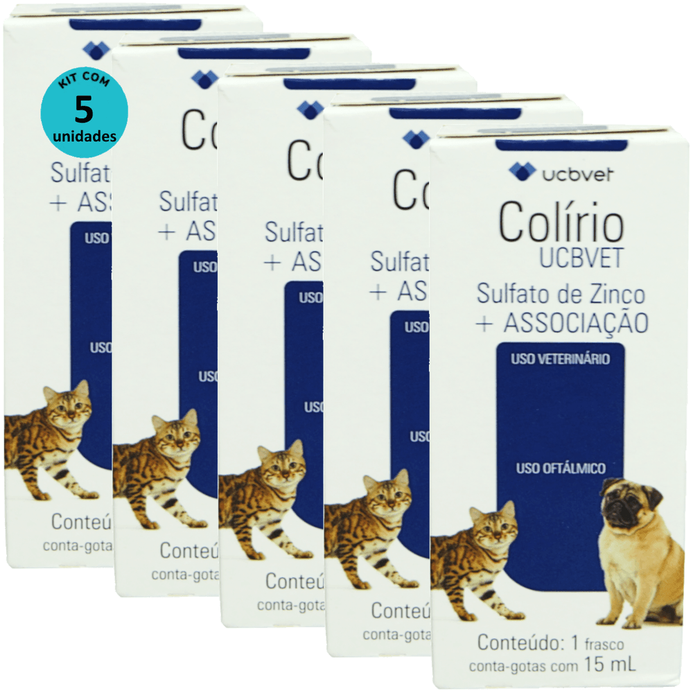 Colírio UCBVET 15ml Para Cães Kit Com 5 Unidades