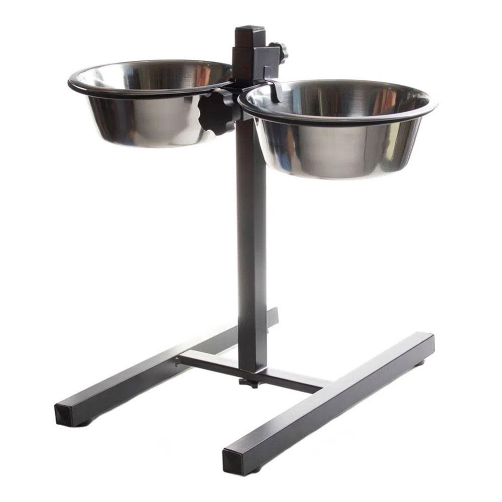 O comedouro possui altura ajustável, com duas bandejas capacidade de até 1,89L. Seu uso é totalmente prático.