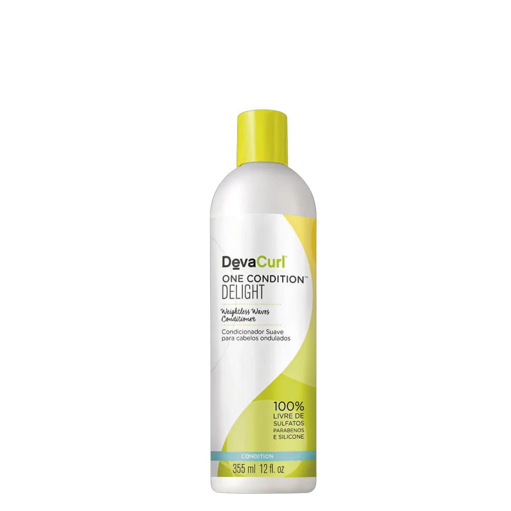 Condicionador Deva Curl One Delight 355ml – Hidratação Leve, Definição de Cachos e Controle de FrizzCondicionador indicado para cabelos ondulados, cacheados e crespos, o Condicionador Deva Curl One Delight com 355ml promove hidratação leve, define as ondas e os cachos com naturalidade e reduz significativamente o frizz sem pesar os fios. Sua fórmula suave respeita a estrutura natural da fibra capilar, mantendo a leveza e a mobilidade dos cabelos finos ou secos. A Linha Deva Curl é reconhecida por sua abordagem clean e alinhada ao movimento Curly Hair, priorizando fórmulas sem sulfatos, parabenos e silicones, que não comprometem a saúde do couro cabeludo nem a integridade da cutícula capilar. A Proteína de Arroz, a Flor de Lótus e o Extrato de Chia e Linho atuam em sinergia para nutrir, proteger e restaurar os fios durante o condicionamento. O produto é Cruelty Free, dermatologicamente testado e formulado com uma fragrância suave e refrescante de notas cítricas, que proporciona sensação de limpeza e bem-estar durante o uso.Benefícios do CondicionadorRedução de até 70% do frizz, com cachos e ondas mais definidos e com aspecto saudável.Hidratação leve que respeita o volume natural dos fios, ideal para curvaturas 2a, 2b e 2c.Fortalece a fibra capilar com proteínas de alto valor biológico, reduzindo a quebra durante o penteado.Desembaraça com facilidade, selando a cutícula capilar e melhorando a maciez e a sedosidade dos fios.Prolonga a durabilidade da definição dos cachos por até 3 dias, mesmo em ambientes úmidos.Formulação balanceada em pH que protege o couro cabeludo e mantém a hidratação prolongada.Ação/Resultado dos AtivosProteína de Arroz: Aumenta o corpo e a resistência da fibra capilar, conferindo sustentação aos cachos sem rigidez.Flor de Lótus: Proporciona ação anti-frizz, nutre profundamente e protege os fios contra danos ambientais e mecânicos.Extrato de Chia e Linho: Rico em ômega-3, aminoácidos e vitaminas A e B, hidrata, potencializa o brilho intenso e melhora a elasticidade da fibra.Glicerina: Age como umectante natural, atraindo e retendo umidade na cutícula capilar para hidratação duradoura.Como Usar o Condicionador Deva Curl One DelightApós lavar os cabelos com shampoo da linha Deva Curl, remova o excesso de água com uma toalha de microfibra.Aplique o condicionador uniformemente do meio até as pontas, evitando a raiz para não pesar os fios.Massageie suavemente para facilitar o desembaraço e permitir a penetração dos ativos.Deixe agir por 3 a 5 minutos para hidratação otimizada.Enxágue completamente até remover todo o resíduo e garantir maciez sem oleosidade.Itens Inclusos: 1 Condicionador Deva Curl One Delight 355 ml.;Observações: Imagem Meramente Ilustrativa.;Gênero: Unissex;Linha: Delight;Categoria: Condicionadores;Tipo de Cabelo: Crespos e Cacheados ou Ondulados;Similares - Thumb de Conteúdo: 355 ml;Benefícios PDP:
