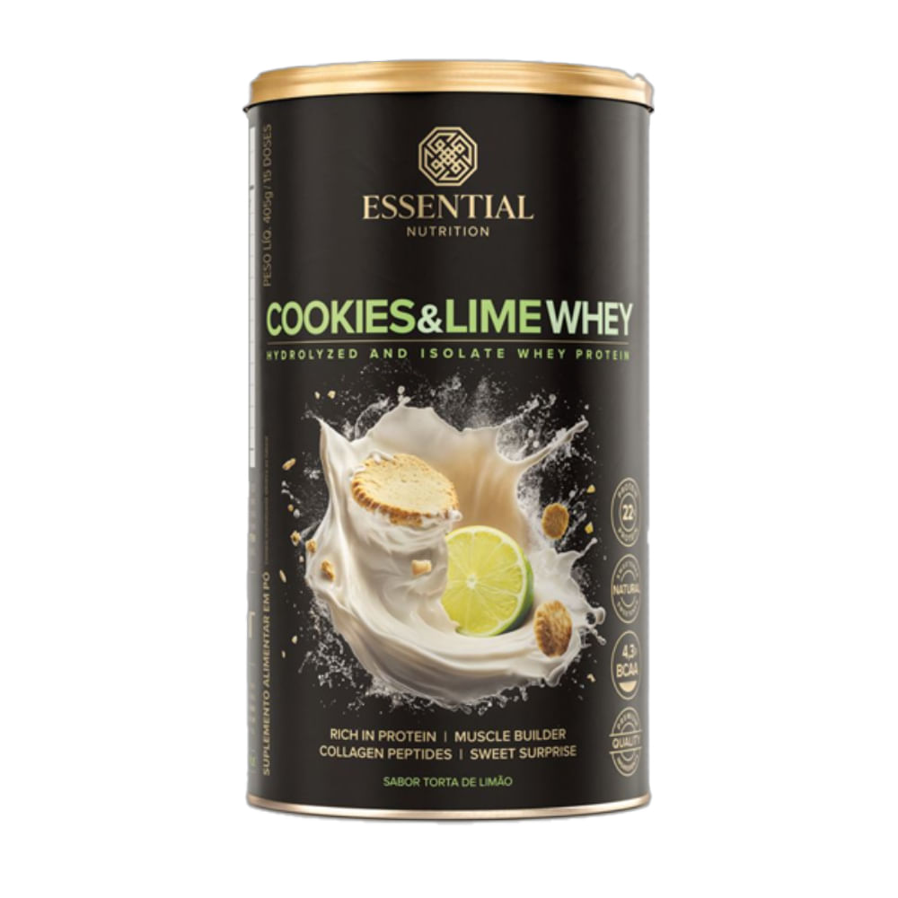 O Cookies & Lime Whey Essential Nutrition leva a combinação surpreendente, equilibrada e irresistível entrega um blend de whey protein hidrolisado e isolado, que apresenta um excelente perfil de aminoácidos para a construção muscular, associado ao colágeno em peptídeos, proteína fundamental na estrutura da pele, tendões, ligamentos e articulações. O aroma, inconfundível. E o sabor? Uma experiência que você não vai esquecer. Imagine aquela sensação de bolacha recém-saída do forno combinada ao toque refrescante do limão, que vai se transformando em uma sobremesa deliciosa no seu paladar. Com o Cookies & Lime Whey Essential Nutrition, cada momento é assim. Ingredientes: Proteínas isolada e hidrolisada do soro de leite (Provon®292 e Thermax®690), colágeno hidrolisado (em peptídeos - Peptan®), aromas naturais e idênticos aos naturais, acidulante ácido cítrico, espessante goma guar e edulcorantes glicosídeos de esteviol de Stevia rebaudiana Bertoni (estévia) e taumatina. NÃO CONTÉM GLÚTEN.ALÉRGICOS: CONTÉM DERIVADOS DE LEITE E SOJA (cerca de 0,1g de lecitina de soja por porção). Sobre a marca: A Essential Nutrition é especializada no desenvolvimento de suplementos alimentares, funcionais e nutrição. Cada produto nosso é muito mais que um produto: é um desejo de algo grandioso para a sua vida. É um manifesto pelo desenvolvimento pessoal com mais qualidade de vida. É por isso que todos os ingredientes que estão, e também os que não estão em nossas fórmulas foram pensados, estudados e fazem parte dos nossos princípios de nutrição. Esse mesmo propósito é compartilhado com médicos e nutricionistas, além de esportistas e pessoas que buscam uma alimentação equilibrada, associada a um melhor estilo de vida. Essas pessoas nos motivam diariamente a continuar desenvolvendo produtos de alta qualidade e inspirando cada vez mais pessoas a viverem melhor. Sobre a Boomi: A Boomi é  um mercado online com produtos saudáveis e sustentáveis, que fazem bem à saúde e ao planeta. São mais de 3.500 produtos de 150 pequenas marcas para você!Nascemos pequenos, mas com um propósito gigante: conectar pessoas a produtos acessíveis que tragam benefícios para a saúde, para o planeta e para a sociedade. Para isso, buscamos ofertar produtos de pequenos agricultores e pequenas empresas em um mundo cada vez mais veloz e que busca mais produtividade. Vamos sempre buscar levar o melhor para você!Nosso propósito é conectar alimentos saudáveis e produtos naturais e sustentáveis a pessoas preocupadas com a sua saúde e com a saúde do planeta. Com preço justo, comodidade e informações confiáveis.Curadoria: Nossos produtos são criteriosamente validados pela nossa curadoria de produtos saudáveis, que busca produtores e empresas que compartilham do nosso alto padrão de qualidade. Da enorme lista de ingredientes banidos à preocupação do bem estar animal, desde o primeiro dia seguimos fieis aos nossos valores, trabalhando com transparência e práticas sustentáveis. Vendemos apenas produtos que admiramos e que nos orgulha.