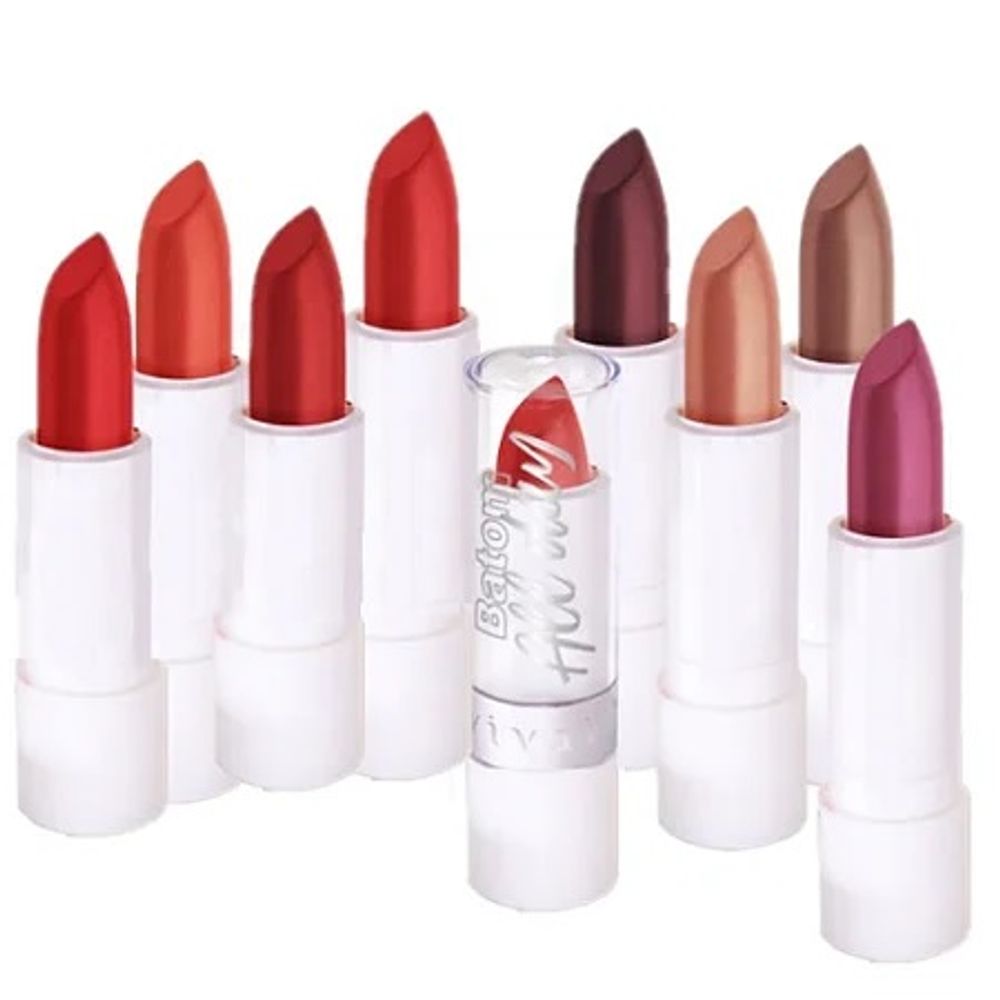 Vivai - Batom All Day 3114.1.1 O batom All Day Matte , são 8 cores super pigmentadas , para usar no dia a dia. Você sabia que cada tipo de batom pode provocar um efeito diferente nos seus lábios? O item é tão importante que é capaz de transformar completamente sua make e ainda servir de hidratante para a pele da boca, evitando rachaduras. Modo de uso: Aplique o batom sobre os labios ou com o auxilío de pincel , até obter o tom desejado.  Dimensões do produto unitário (cm): 1,9 de diâmetro x 7,2 de altura Peso Líquido Unitário: 3,5g