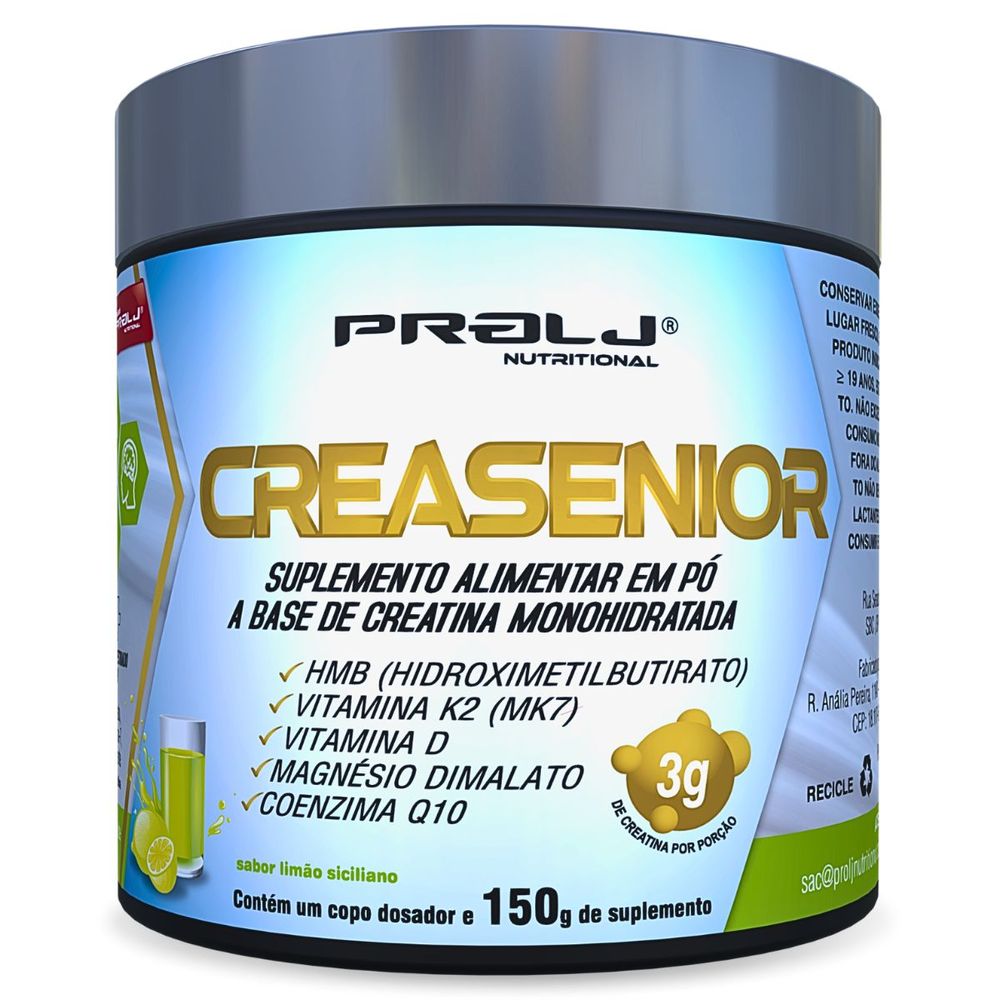 Creasenior Creatina Monohidratada com HMB, Magnésio Dimalato, Vitamina K e Vitamina D | 150 Sabor Limão - CREASENIOR CREATINA MONOHIDRATADA 150g SABOR LIMÃO