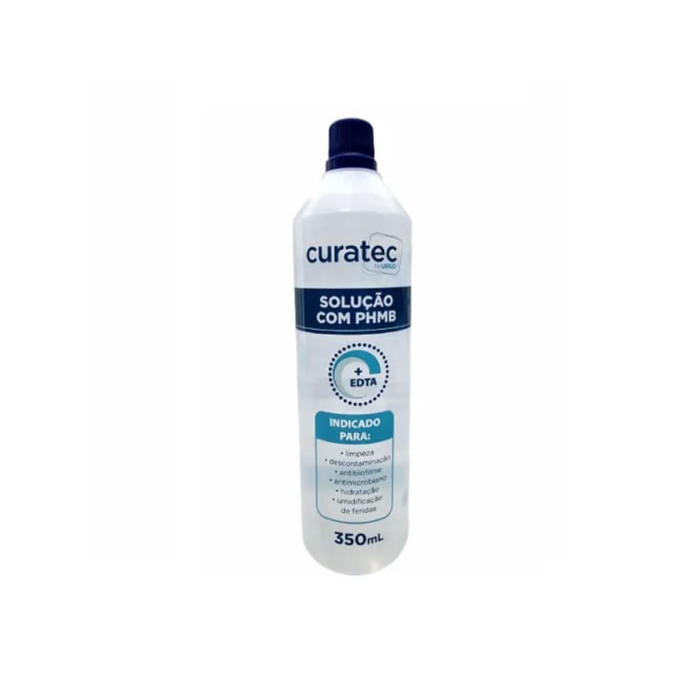 CURATEC SOLUÇÃO COM PHMB + EDTA, é uma solução aquosa, incolor e límpida, destinada à limpeza e descontaminação de todos os tipos de feridas inclusive as lesões de difícil acesso (cavitarias e fissuras), além de oferecer hidratação adequada ao leito.A única solução no mercado com EDTA, um agente quelante que potencializa a ação do PHMB.CURATEC SOLUÇÃO COM PHMB + EDTA atua diretamente no leito da ferida e pele circundante, favorecendo a limpeza tecidual, age na descontaminação dos microorganismos devido a atuação da cocoamidopropilbetaína, um tensoativo suave. Além disso, a ação de amplo espectro do PHMB associado ao EDTA, para diferentes micro-organismos (bactérias gram positivas, bactérias gram negativas, leveduras e fungos), faz com que o produto possua potente ação antimicrobiana.Limpeza, descontaminação, antibiofilme, antimicrobiano, hidratação e umidificação de feridas. Elimina 99,9% das bactérias em 5 min. Eficácia antimicrobiana por até 72 horas .Indicações:-A Solução com PHMB +EDTA Curatec By URGO é recomendada para:-Limpeza e descontaminação do leito;-Controle de odor e da carga microbiana;-Atua de maneira efetiva na prevenção, tratamento e remoção do biofilme?-Limpeza, desbridamento, descontaminação e umidificação de feridas cutâneas agudas, crônicas e queimaduras;-Preservar a umidade da lesão;-Auxiliar na remoção de crostas.