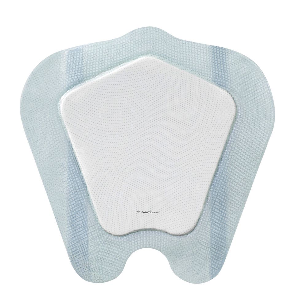 Curativo Espuma e Silicone Sacral 25x25cm - Biatain Silicone - Coloplast 33405 é um curativo de espuma absorvente macio e flexível, com uma camada de silicone suave e exclusiva tecnologia 3DFit®.Composição: Tamanho: 25x25 cm. Modelo: Sacral. Código:;Informação Adicional: Características: Cobertura composta de: Camada auto-adesiva perfurada de silicone para um ajuste suave e seguro; Espuma de poliuretano com Tecnologia 3DFit, macia, estéril, com capacidade de absorção superior e vertical, sistema tranca-fluído para retenção do exsudato mesmo sob compressão e que se conforma ao leito da ferida, preenchendo o espaço morto e prevenindo o acúmulo do exsudato; Camada de lock-away para redistribuição horizontal do exsudato. Benefícios: Tecnologia 3DFit que proporciona o meio úmido ideal para o processo de cicatrização; Face superior apresenta filme de poliuretano com impressão da marca, impermeável à água e bactérias, que permite as trocas gasosas; Aplicação sem toque em 3 peças na cor turquesa para posicionamento mais prático da cobertura na ferida; Cobertura flexível e suave para reduzir o atrito e cisalhamento, evitando a ruptura da pele com fissura e que se ajusta perfeitamente ao reto evitando infiltração e danos a peleperilesão.;Registro Anvisa: Nº 10430310110.;