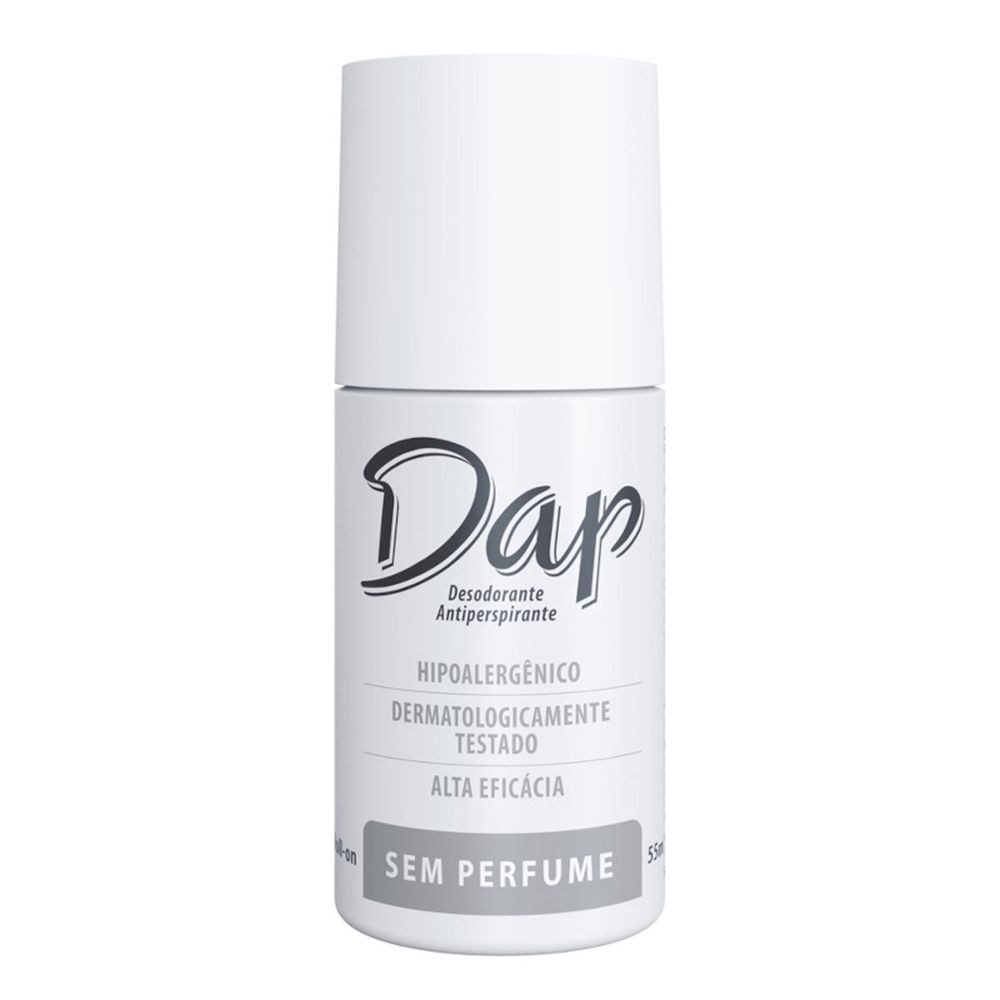 Desodorante Dap Roll-On Unissex Sem Perfume é ideal para auxiliar na higiene corporal diária. Sua fórmula, sem álcool e antitranspirante, controla o excesso de umidade nas axilas, evitando o incômodo causado pelos maus odores da transpiração. Embalagem prática e compacta, com 55ml.