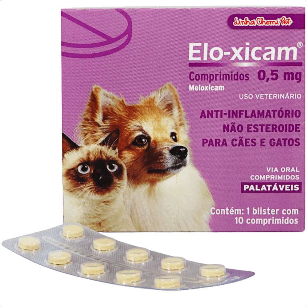 Elo-Xicam 0,5mg com 10 comprimidos A resposta ao uso do Anti-inflamatório Elo-xicam Comprimido 0,5mg em cães e gatos é muito satisfatória frente ao controle de febre e dor, por exemplo, em períodos pós-operatórios, dores articulares, lesões musculoesqueléticas, displasias e em extrações dentárias.Seu uso deve ser recomendado e acompanhado por um médico-veterinário para orientar a correta posologia e evitar efeitos indesejadosModo de usoA espécie canina tem um metabolismo diferente da felina, portanto a administração correta para cada um deles deve ser respeitada na busca de atingir o efeito terapêutico de uma forma segura para os pets.Geralmente, para os cães, preconizam-se administrações a cada 24 horas, de 5 a 7 dias de tratamento, com uma dose maior no primeiro dia.Para os gatos, há a necessidade de respeitar uma única dose durante todo o tratamento, sem ultrapassar o uso do medicamento por mais do que 4 dias.O Médico Veterinário responsável por cada animal deve ter cautela no uso.ComposiçãoCada comprimido de 200 mg contém: Meloxicam 0,5 mg; Excipiente q.s.p. 200 mg.Indicação: Cachorros;