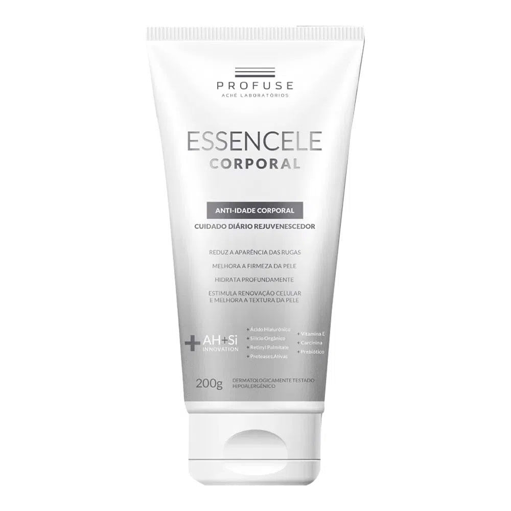 Emulsão Corporal Anti-idade Profuse Essencele é hipoalergênico e dermatologicamente testado. Sua fórmula, com ativos eficazes e ação antienvelhecimento, hidrata, reduz as rugas, melhora a firmeza e a textura da pele do corpo, estimulando a renovação celular. Embalagem com 200g.