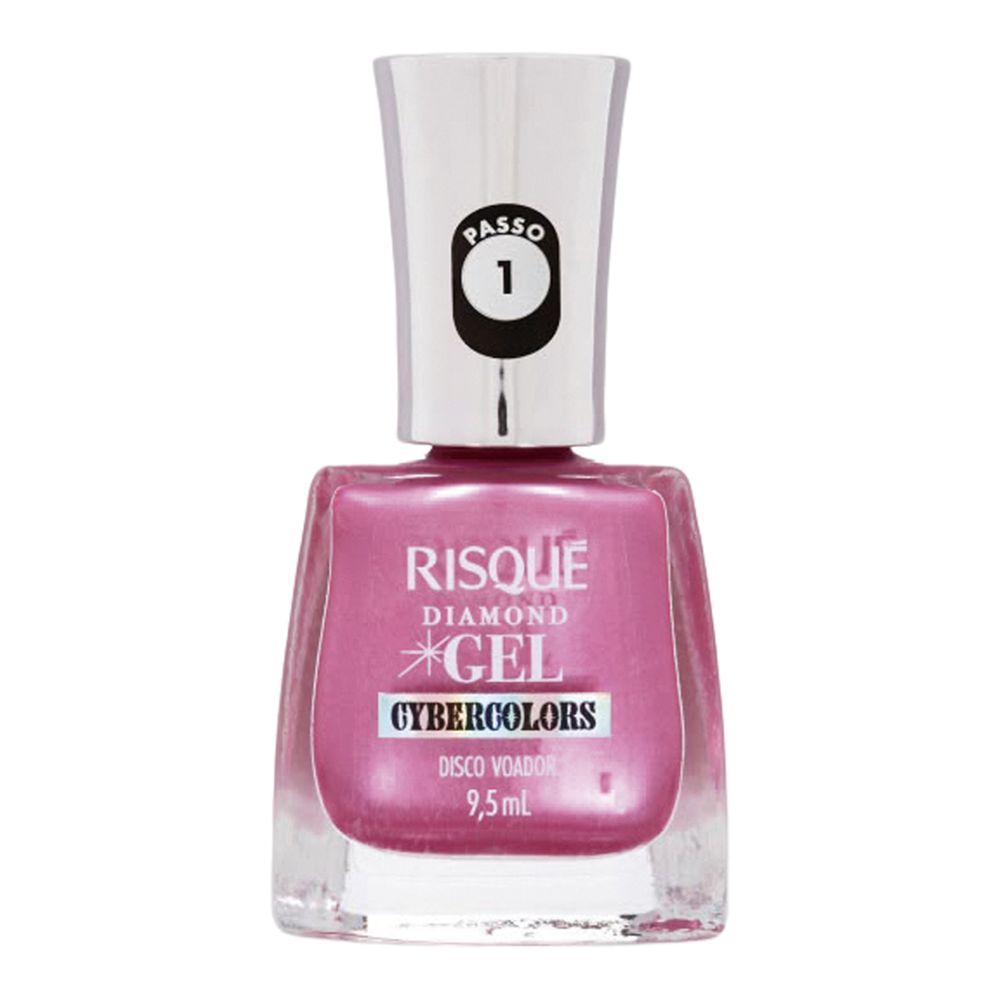 O Esmalte Metálico Risqué Diamond Gel Disco Voador apresenta uma coloração rosa metálica de alta performance com 9,5ml. Este produto da linha Diamond Gel oferece acabamento profissional com efeito gel sem necessidade de exposição à luz UV, garantindo resultado superior com aplicação simplificada.