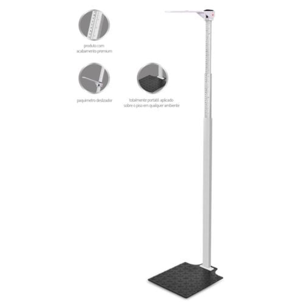 Faixa de medição de 85 até 210 cm Resolução em milímetros Graduação1 mm Tolerância+ / – 5mm em 210 cm. Matéria Prima Alumínio anodizado + plástico ABS injetado UtilidadePara uso em clínicas, hospitais, consultórios, academias, e saúde pública em geral Garantia1 ano contra quaisquer vícios de qualidade de materiais e/ou fabricação