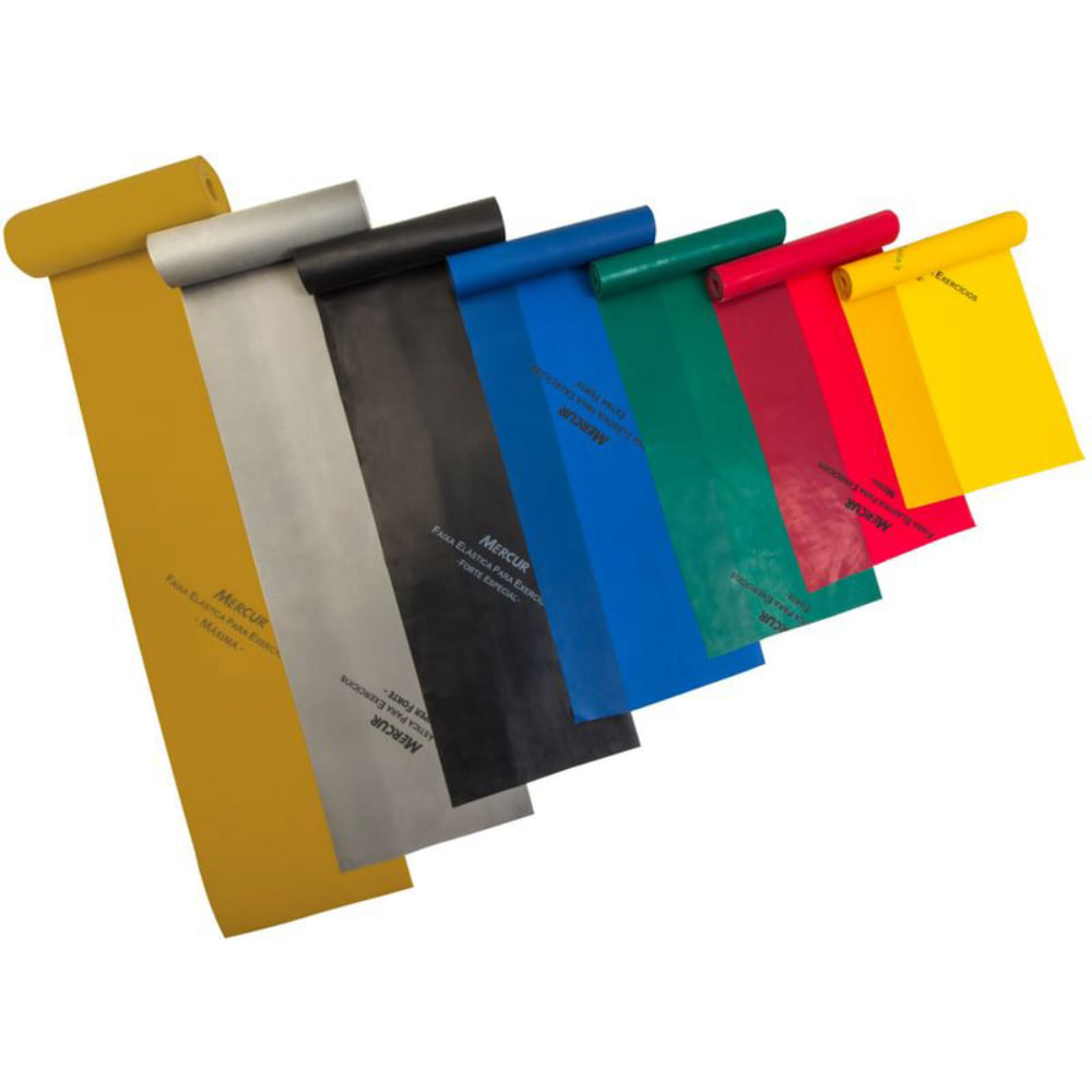 As Faixas Elásticas para Exercícios são leves, fáceis de usar e de transportar. Permitem realizar diferentes tipos de exercícios. Possuem sistema progressivo, que permite alterar as resistências conforme a melhora no desempenho. Auxiliam no fortalecimento e resistência dos músculos, na melhora da coordenação motora e habilidades funcionais e no auxílio do aumento da mobilidade, flexibilidade e força em casos de prevenção e reabilitação de lesões, treinamento esportivo, condicionamento físico e tratamento pós-operatório. Aroma neutro e toque macio. Tamanho único - 15cm x 1,5m Resistências: Suave (amarela), Média (vermelha), Forte (verde), Extra forte (azul), Forte especial (preta), Super forte (prata), Máxima (dourada ) CADA UNIDADE = 1 METRO