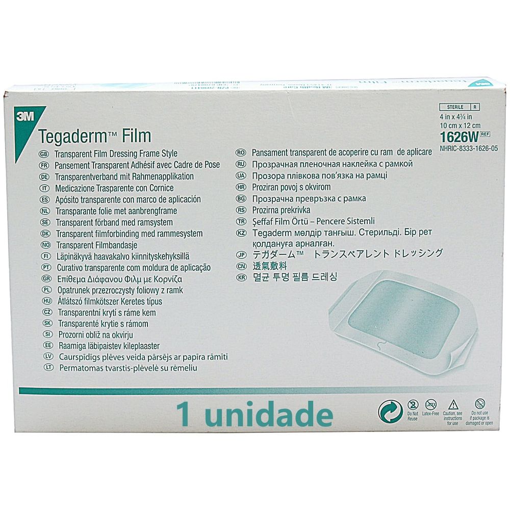 Fixador de Cateter Tegaderm 3M1626W - 10 x 12cmA película Tegaderm é uma película fina com um adesivo hipoalergênico isento de látex.Permite a passagem de oxigênio e umidade.É impermeável à água e líquidos, a bactérias e vírus.O curativo Tegaderm pode ser utilizado para: proteção de cateteres e feridas,manter um ambiente úmido, para cicatrização de feridas,para facilitar o desbridamento autolítico,cobertura de proteção para pele vulnerável,para fixar dispositivos à pele,para cobrir queimaduras de primeiro e segundo grau,cobertura de proteção ocular.Entre as aplicações para o tratamento de feridas e proteção de locais incluem-se:Incisões cirúrgicas limpas;Áreas doadoras de enxerto de pele;Úlceras de pressão em Estágio I ou II;Desbridamento de escaras;Curativo secundário sobre gaze, alginatos ou hidrogéis;Feridas superficiais como abrasões, fissuras epidérmicas e bolhas;Queimaduras de primeiro e segundo graus;Curativos para traqueostomia;Cobertura protetora para evitar rompimento da pele;Cobertura protetora para os olhos.ANVISA: 80284939083.O uso deste produto deve ser feito conforme orientação de um profissional da saúde.Não usar o curativo como substitutos de suturas ou outros métodos primários de encerramento de feridas.Atenção! Este item é vendido por unidade.Vendemos o produto fora da embalagem.As cores apresentadas no site são meramente ilustrativas e podem ou não corresponder com exatidão à tonalidade aplicada.Para mais informações sobre manuseio e cuidados quanto ao uso do produto, consulte o Manual do Usuário.Imagem meramente ilustrativa e a descrição do produto é de responsabilidade do fabricante.