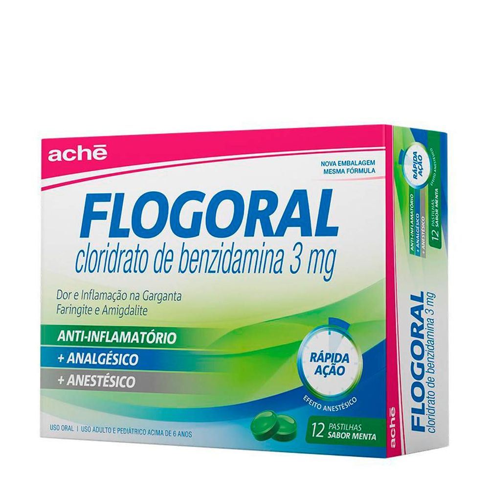 Flogoral Menta Aché 12 Pastilhas (cloridrato de benzidamina) possui ação anti-inflamatória, analgésica e anestésica, sendo indicado para tratamento de inflamações da boca e da garganta, tratando sintomas como dor e irritação, amigdalites e faringites. Uso adulto e pediátrico.