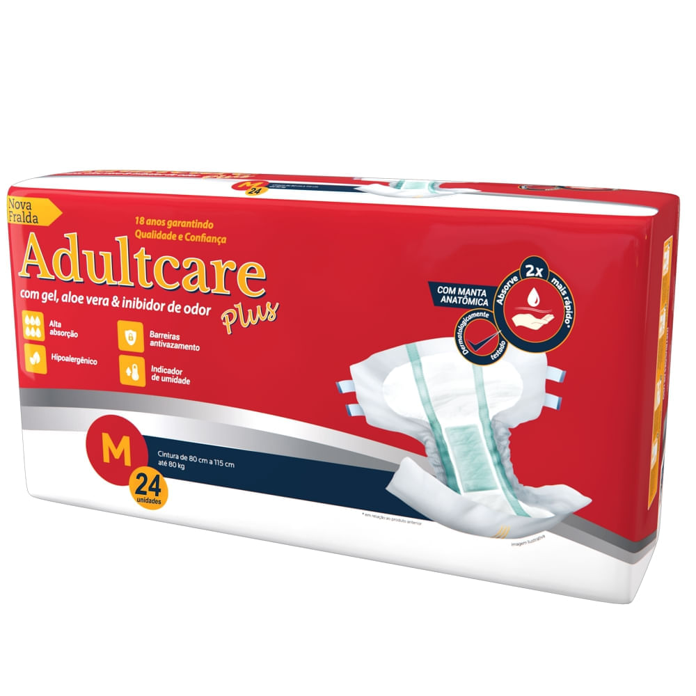 Fralda Geriátrica Adultcare Plus - Tamanho M - Com 26 fraldas