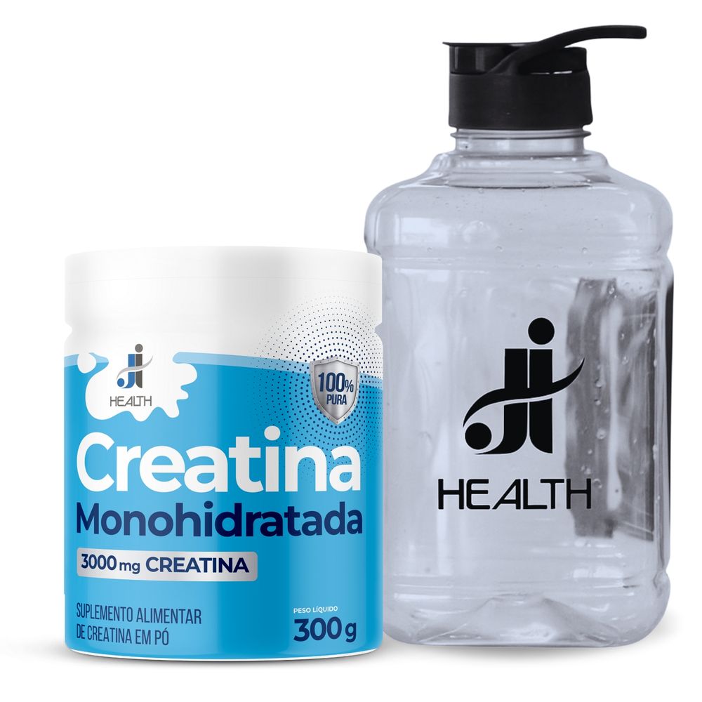 Garrafa para academia 2 litros com alça + pote de Creatina Monohidratada J&I Health 300g pura Preta