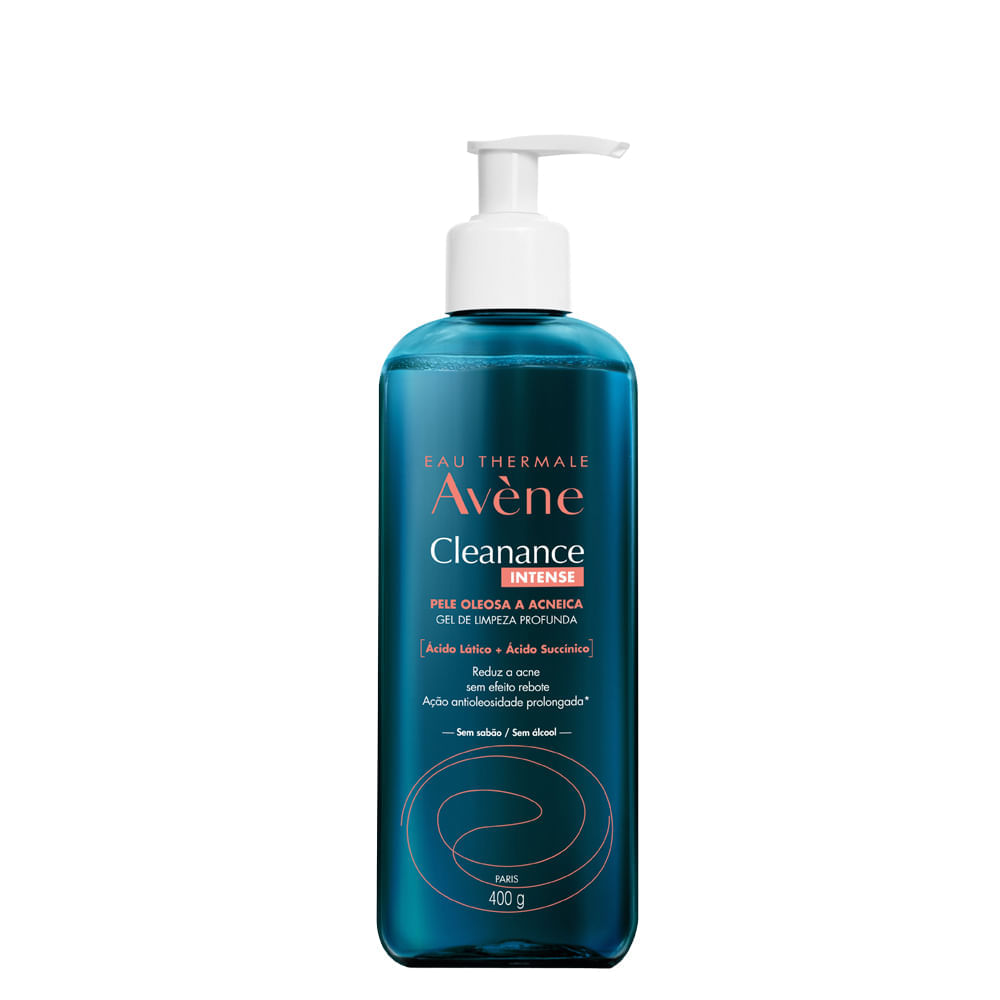 Avène Cleanance Intense Gel de Limpeza Facial Profunda 400g – Limpeza Profunda, Controle da Oleosidade e AntiacneO Avène Cleanance Intense Gel de Limpeza Facial Profunda 400g é a mais recente inovação para pele oleosa e com tendência à acne, sendo a Nº1 em prescrição dermatológica para limpeza facial eficaz e segura.Sua fórmula exclusiva reúne Ácido Lático e Ácido Succínico, que atuam diretamente na redução da acne e na inibição da bactéria causadora de espinhas. Com ação antioleosidade prolongada, o gel evita o efeito rebote, mantém a pele equilibrada ao longo do dia e proporciona uma limpeza intensa sem ressecar. Resultados comprovados: redução de 86% da acne e 83% dos poros dilatados em apenas 7 dias de uso.Formulado para máxima tolerância, é hipoalergênico, não comedogênico, livre de sabão e álcool, tornando-se ideal para uso diário, inclusive em peles sensíveis. Benefícios do Gel de LimpezaLimpeza facial profunda e eficazReduz a acne em até 86%Reduz os poros dilatados em até 83%Evita o efeito rebote da oleosidadeAção antioleosidade prolongadaInibe o desenvolvimento da bactéria causadora da acneNão resseca a pele Ação/Resultado dos AtivosÁcido Lático – Promove renovação celular suave e equilíbrio da pele, ajudando a controlar a oleosidade. Ácido Succínico – Atua na redução da acne e inibição da bactéria responsável pelas espinhas. Água Termal Avène – Calmante, suavizante e anti-irritante, proporciona conforto até mesmo para peles sensíveis.Essa combinação de ativos garante limpeza profunda, redução de imperfeições e pele equilibrada em poucos dias de uso. Como Usar o Avène Cleanance Intense Gel de Limpeza Facial Profunda 400gAplique o gel sobre a pele úmida.Massageie suavemente até formar espuma.Enxágue abundantemente.Utilize diariamente, de preferência pela manhã e à noite. Indicação de UsoIndicado para pele oleosa e acneica, ideal para quem busca:Reduzir acne e oleosidade excessivaDiminuir poros dilatadosManter a pele limpa, uniforme e saudávelUm gel de limpeza eficaz e seguro para uso diário Dica do EspecialistaPara potencializar os resultados da rotina antiacne, utilize o Avène Cleanance Intense Gel de Limpeza Profunda duas vezes ao dia.Após a limpeza, complemente com um hidratante matificante ou um tratamento específico para imperfeições da linha Cleanance, garantindo controle total da oleosidade e da acne.