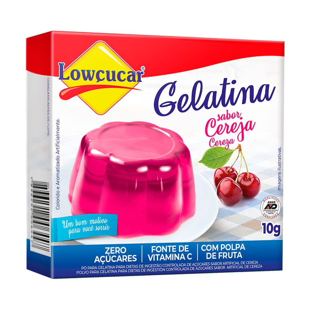 Ingredientes: Gelatina; Sal; Acidulante Ácido Fumárico; Aroma Artificial de Cereja; Estabilizante Citrato de Sódio; Edulcorantes ArtificiaisAspartame e Acesulfame de Potássio; Corante Artificial Ponceau.
