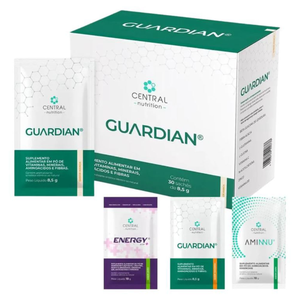 GUARDIAN® 8,5g | 30 Sachês – MANGASuplemento para saúde intestinal e fortalecimento da imunidade com glutamina, prebióticos e vitaminasGUARDIAN® agora na versão sabor MANGA, trazendo um toque tropical e refrescante para o cuidado diário com o intestino e a imunidade. Desenvolvido para quem busca praticidade sem abrir mão da eficiência, sua fórmula combina ingredientes com ação sinérgica que contribuem para o equilíbrio da microbiota intestinal, integridade da mucosa e fortalecimento das defesas naturais do organismo.Com glutamina, goma acácia (prebiótico), beta-glucana, vitaminas e minerais, GUARDIAN® oferece suporte completo para o funcionamento intestinal e o sistema imunológico — agora com um sabor agradável e frutado que facilita o consumo diário.? Por que a saúde intestinal é tão importante?O intestino participa de aproximadamente 70% da atividade imunológica do corpo. Ele atua como barreira protetora, auxilia na absorção de nutrientes e contribui para a produção de neurotransmissores como a serotonina, que impactam diretamente o humor e o bem-estar.Desequilíbrios intestinais podem estar associados a:Gases, inchaço e desconfortos abdominaisConstipação ou diarreia frequenteImunidade baixa e infecções recorrentesAlterações na pele e sensibilidades alimentaresCansaço e oscilações de humor? Benefícios do GUARDIAN®:Auxilia no funcionamento intestinal e no equilíbrio da floraContribui para a integridade da barreira intestinalOferece suporte ao sistema imunológicoFavorece a absorção de nutrientesApoia mais disposição e bem-estar diário? Principais ingredientes:L-Glutamina, L-Glicina e Cisteína: aminoácidos que auxiliam na manutenção da mucosa intestinalGoma Acácia: fibra prebiótica que favorece o crescimento de bactérias benéficasBeta-glucana de levedura: ingrediente natural com ação imunomoduladoraVitamina C, Vitamina D3 e Zinco: nutrientes antioxidantes essenciais para o sistema imune? Como usar:Dissolva 1 sachê (8,5g) em 200ml de água e consuma imediatamente.A dose diária pode variar conforme orientação do profissional de saúde.? Ideal para:Quem busca suporte para intestino saudávelPessoas com desconfortos digestivos e imunidade reduzidaDietas restritivas (sem glúten, sem lactose, sem açúcar)Uso diário como aliado da flora intestinal e do sistema imune