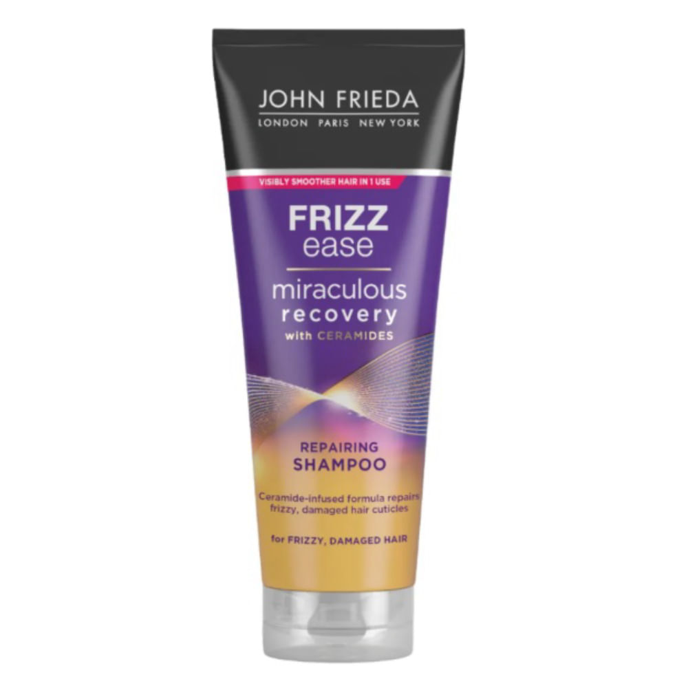 Indicado para todos os tipos de cabelos, o John Frieda Frizz Ease Miraculous Recovery é um shampoo formulado com uma mistura de Óleo de Argan, Coco e Moringa que limpa e repara a aparência dos fios danificados para transformá-los em cabelos macios e sedosos. Ainda, conta com Tecnologia Anti-Dano, além de nutrientes vitais e proteína de seda, que criam uma barreira para ajudar a selar a hidratação essencial, bloquear a umidade e prevenir o aparecimento de danos futuros.