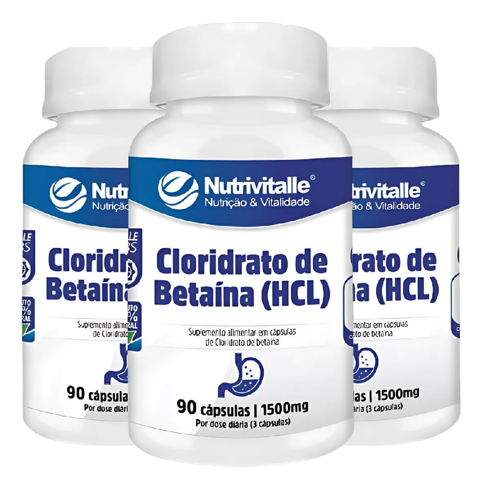 KIT 03 CLORIDRATO DE BETAINA (HCL) 1500MG 90CAPS NUTRIVITALLE