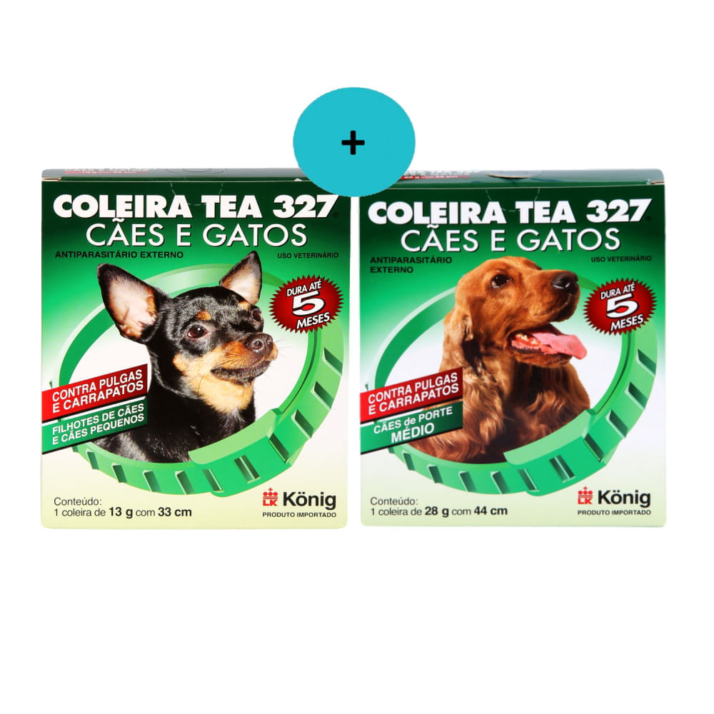 Kit 1 Coleira TEA Cães 33cm Peq. Konig+1 Coleira TEA Cães 44cm Méd. Konig