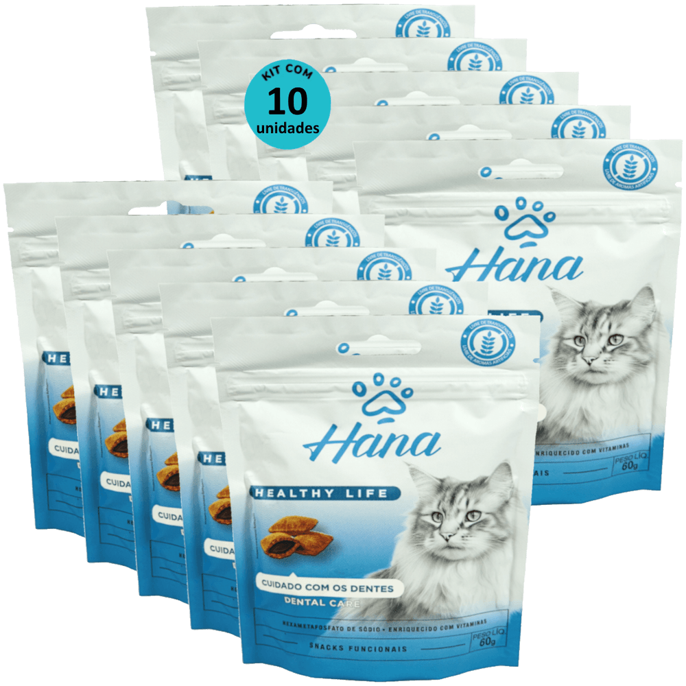 Kit 10 Snacks Hana Healthy Life Dental Care P/ Gatos Adultos- 60g