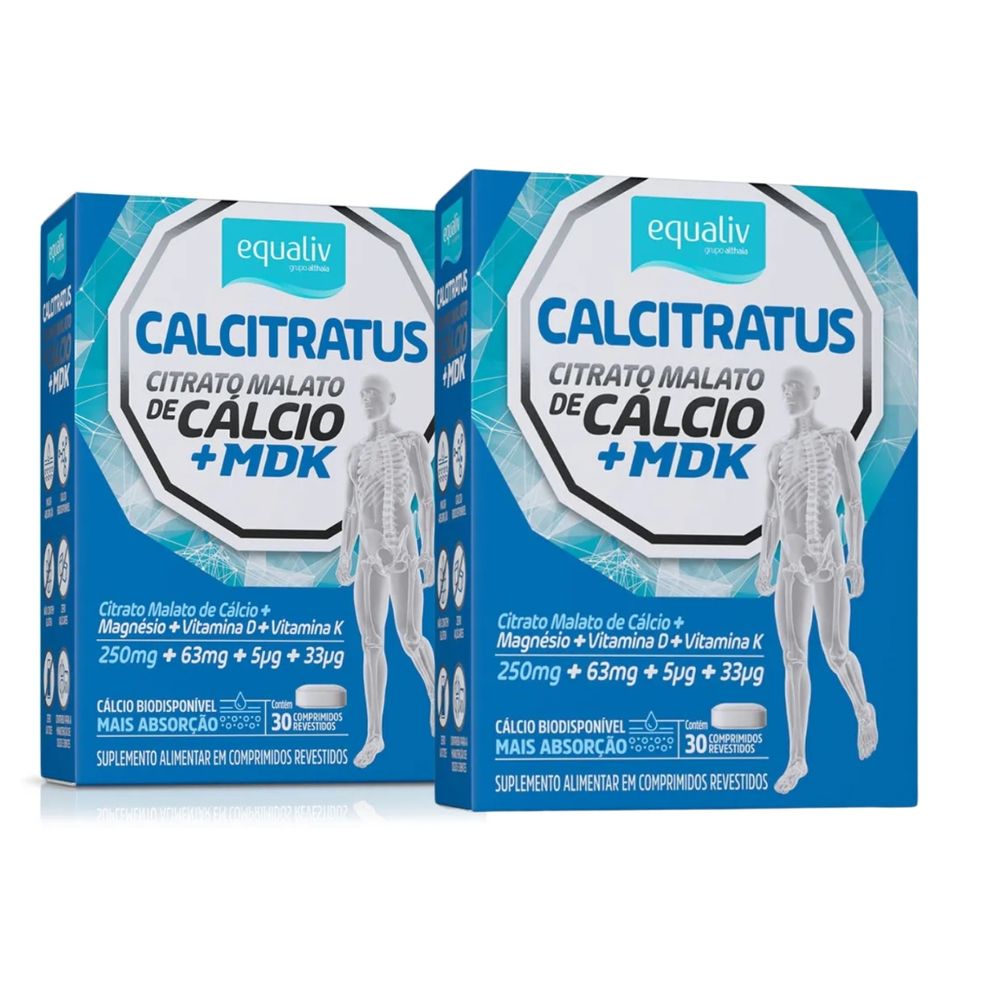 Kit 2 Calcitratus + Mdk Citrato Malato de Cálcio Vitam D K Equaliv Sem Sabor