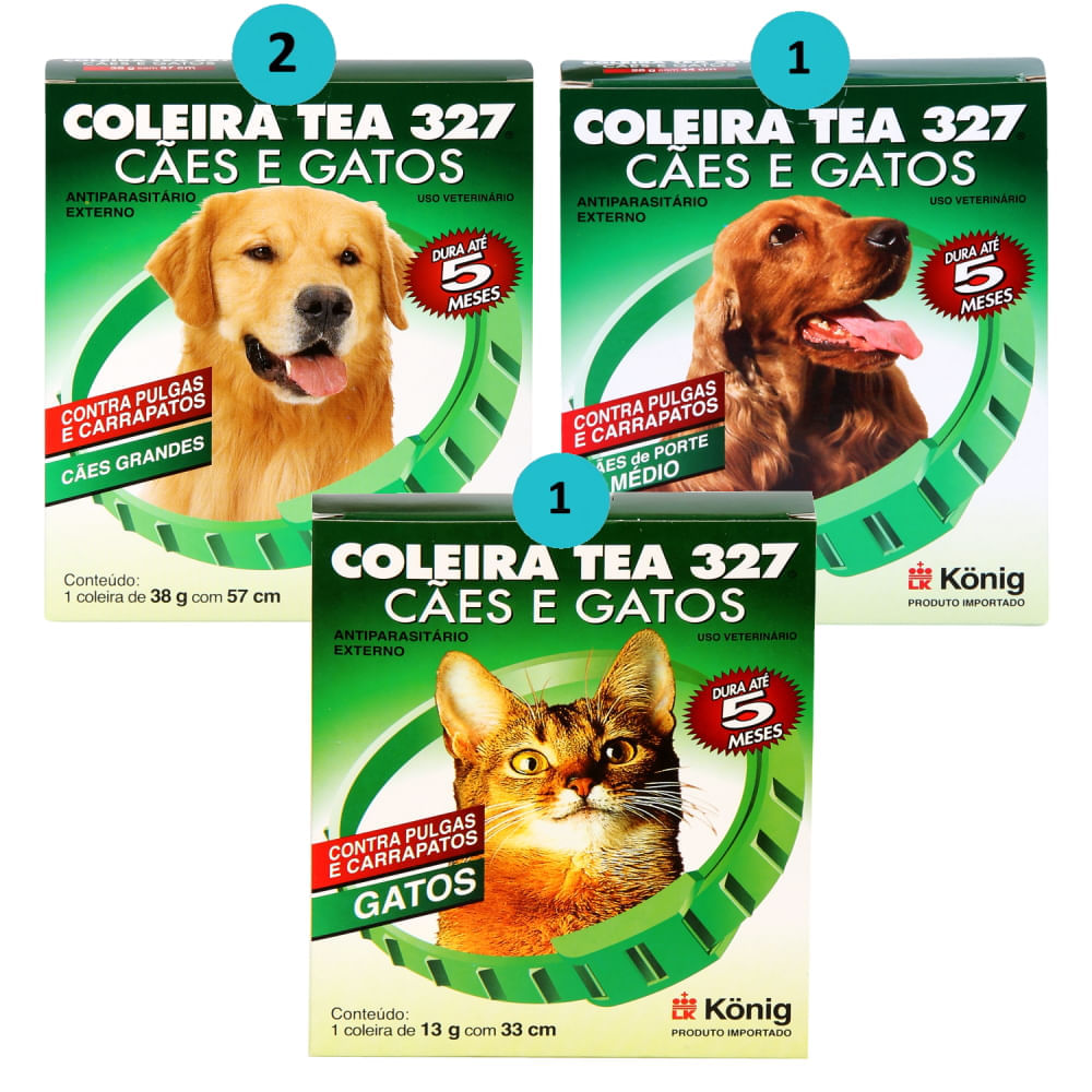 Kit 2 Coleira Contra Pulgas E Carrapatos Cães Grandes+ 1 Coleira Cães Média+ 1 Coleira Gatos Konig