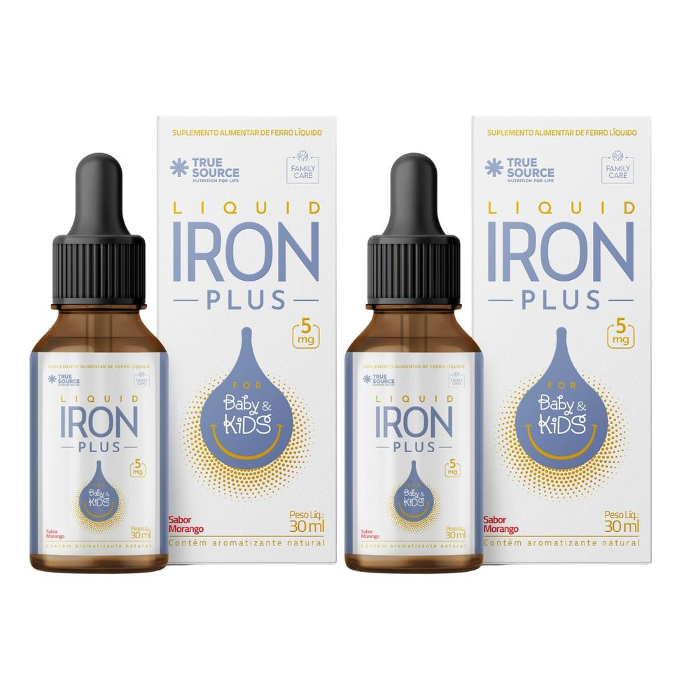 Kit 2 Liquid Iron PLUS Baby Kids Ferro Multivitamínico TrueSource Morango