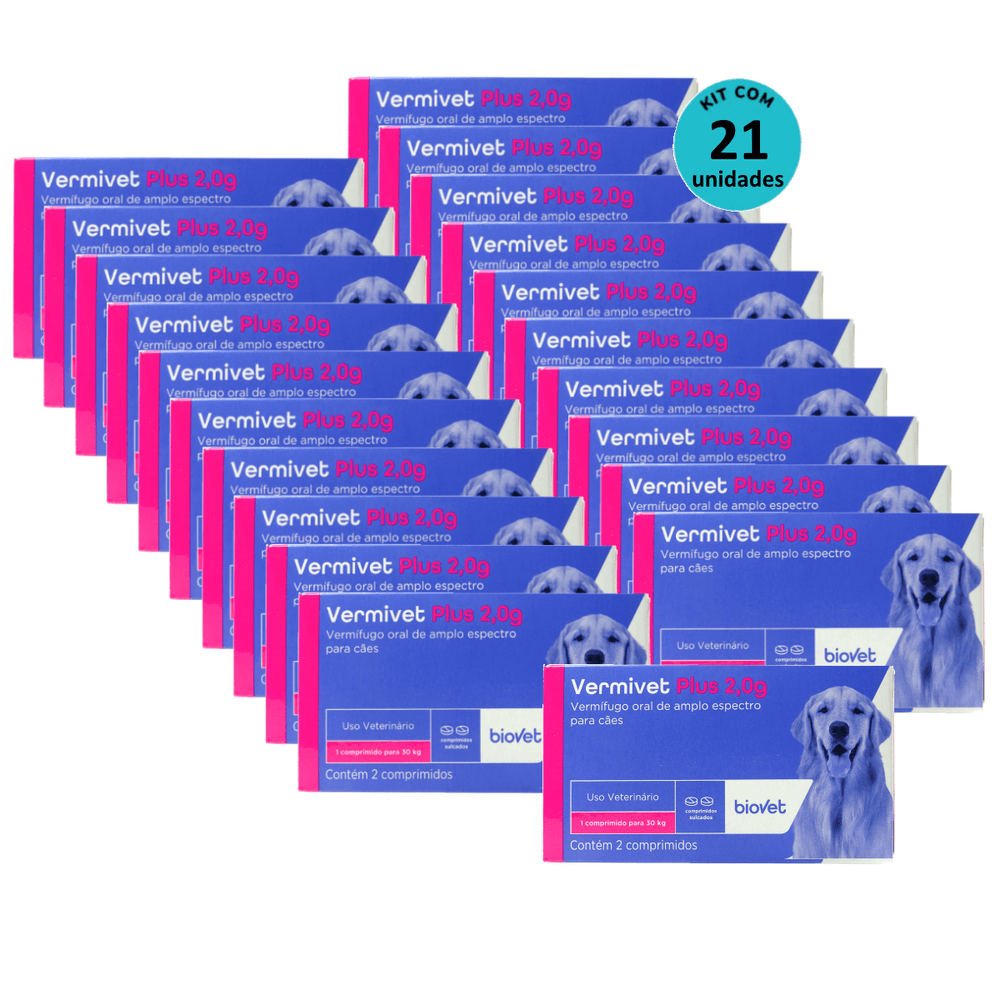 Kit 21 Vermífugo Vermivet Plus Biovet 2g C/ 2 Comprimidos