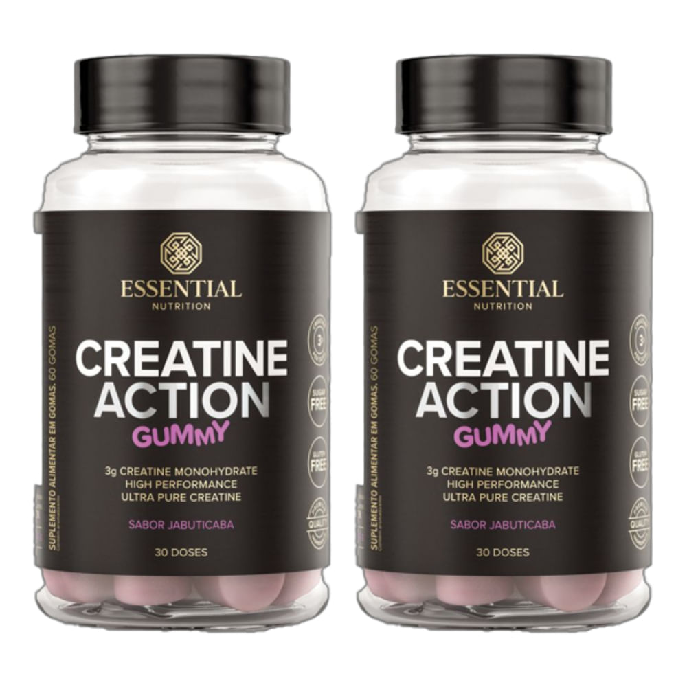 Kit 2X: Creatine Action Gummy Jabuticaba Essential Nutrition 60 Gomas