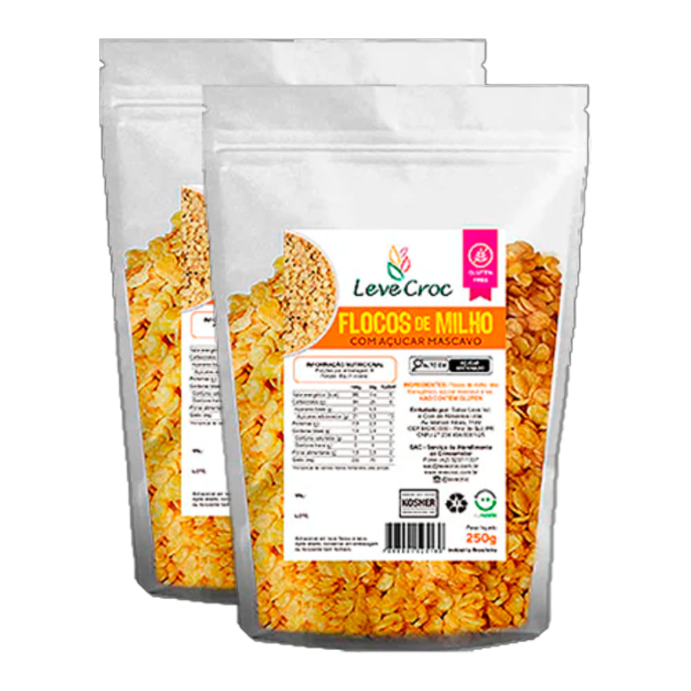 Kit 2X: Flocos de Milho com Açúcar Mascavo Sem Glúten Leve Croc 250g