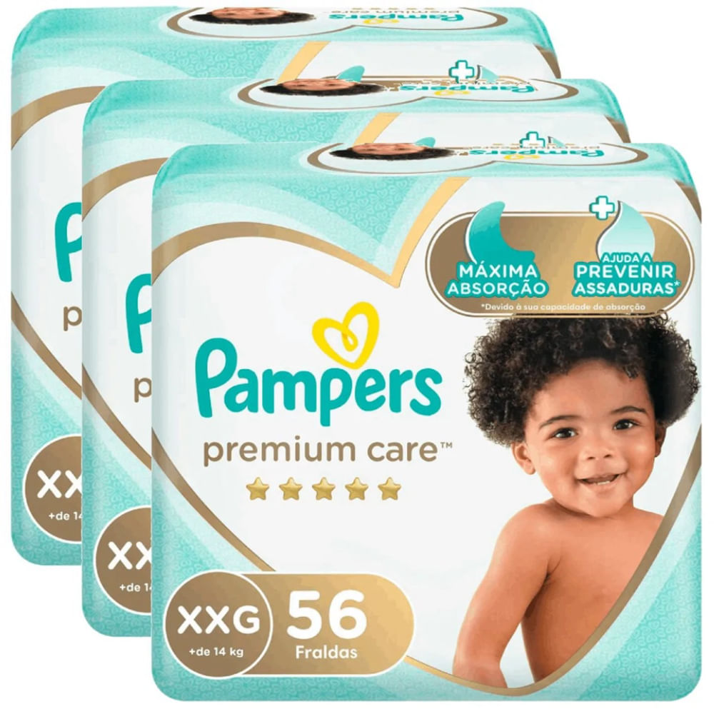 Kit 3 Fraldas Pampers Premium Care Xxg 56 Unidades