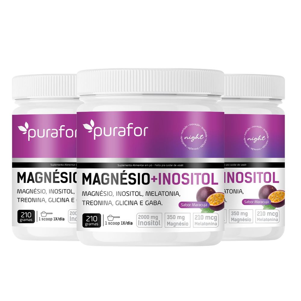 Kit 3 Magnésio e Inositol 210g Purafor Noite