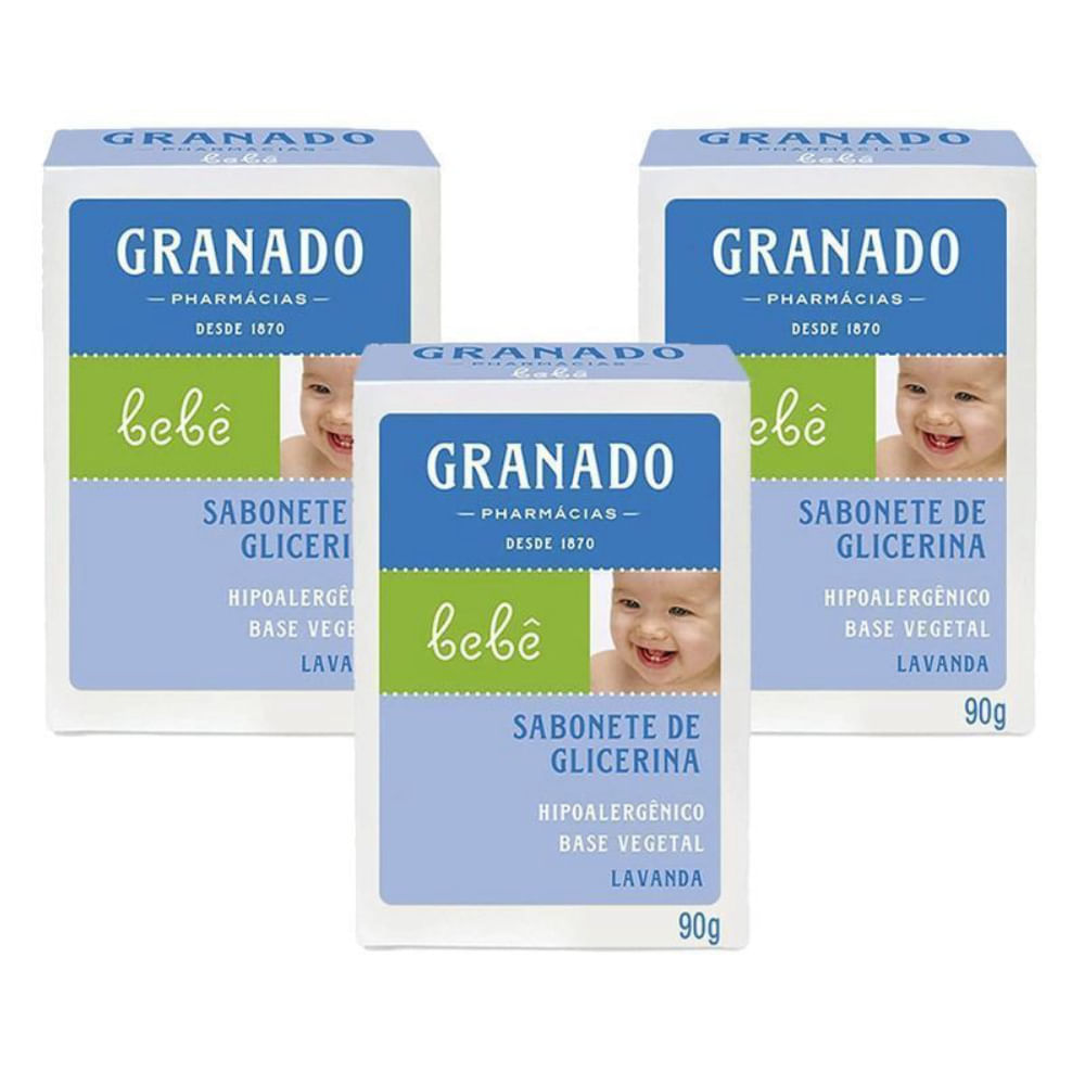 KIT 3 Sabonetes Barra de Glicerina Granado Bebê Lavanda 90g