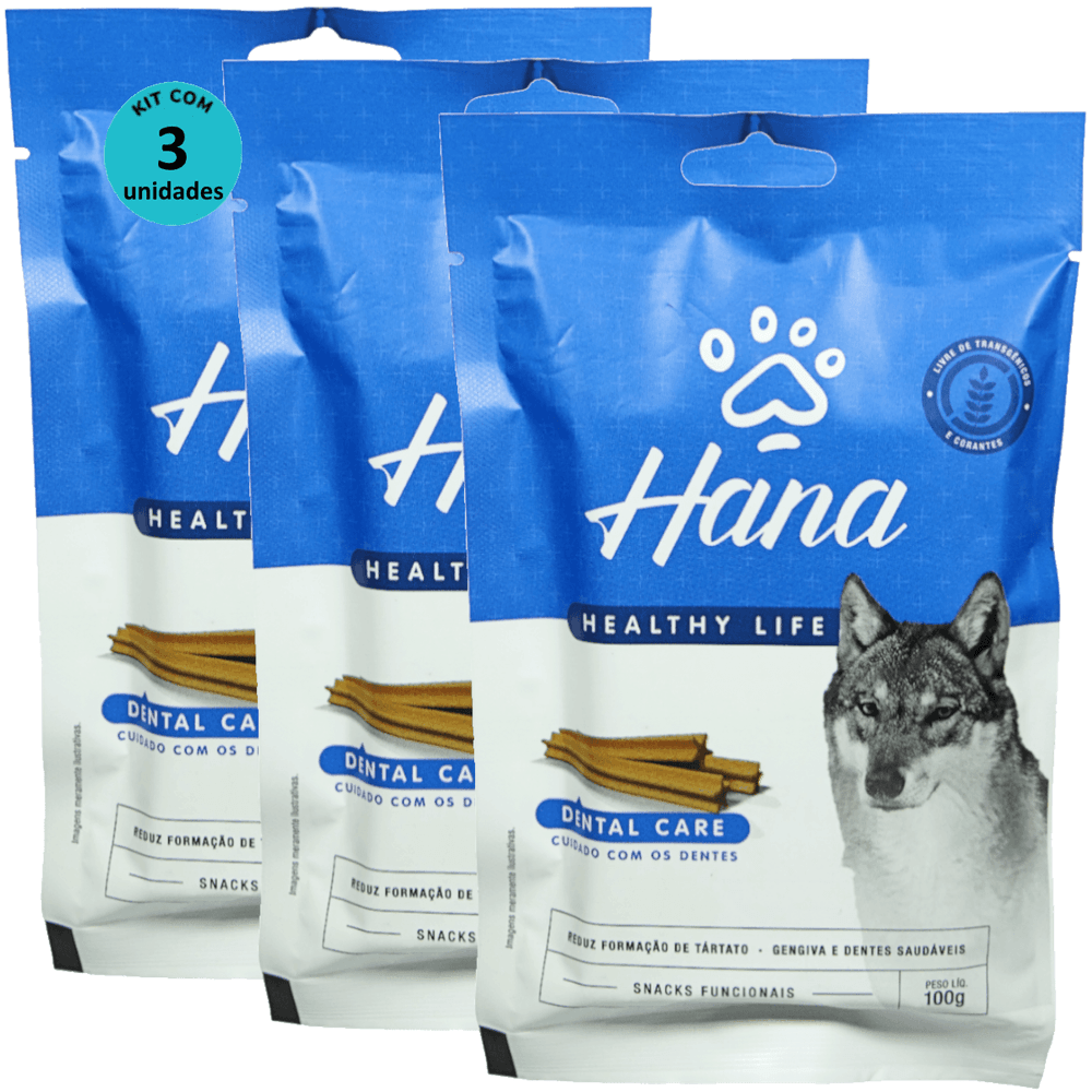 Kit 3 Snacks Hana Healthy Life Dental Care- Cuidado C/ os Dentes- P/ Cães Adultos- 100g