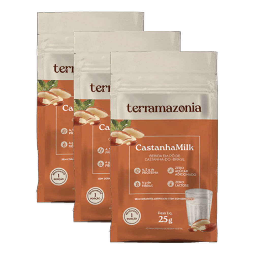 Kit 3X: Bebida Vegetal de Castanha do Pará em Pó Castanha Milk Sachê Terramazônia 25g