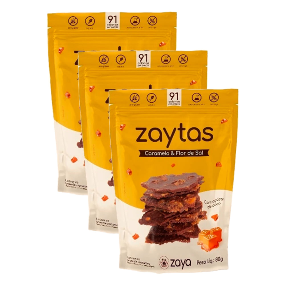 Kit 3X: Biscoito Zaytas Caramelo Sem Glúten Zaya 80g