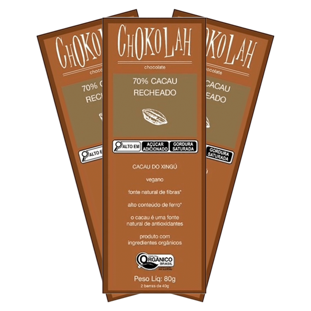 O Chocolate 70% Cacau Recheado Orgânico CHoKolaH é tão cremoso que derrete na boca a cada pedaço que você come. É feito com ingredientes orgânicos para dar a você o melhor sabor sem prejudicar a sua saúde._x000D_  _x000D_ Com política própria de qualidade, a produção da Chokolah usa amêndoas de cacau selecionadas e cultivadas segundo as normas de produção orgânica certificada pela Ecocert. A matéria-prima é então fermentada, torrada, prensada e processada segundo os melhores processos europeus._x000D_  _x000D_ Ingredientes: Casca (75%) 70% cacau orgânico*, 29,6% açúcar demerara orgânico*, 0,4% emulsificante lecitina de girassol**, Recheio (25%) 49% cacau orgânico*, 30% óleo de palma**, 20,6% açúcar demerara orgânico, 0,4%emulsificante lecitina de girassol**._x000D_ *Ingredientes orgânicos_x000D_ **Todos os ingredientes são livres de DNA transgênico._x000D_ ALÉRGICOS: PODE CONTER CASTANHA DE CAJU, CASTANHA DO BRASIL, AMENDOIM E SOJA._x000D_  _x000D_ Sobre a marca: A CHoKolaH é uma fábrica que faz o chocolate a partir da amêndoa de cacau fino. A nossa história começou na década de 90, na feirinha de orgânicos da AAO, do Parque da Água Branca (SP), onde a minha mãe, Rosemarie Jensen, grande conhecedora de plantas, vendia as hortaliças que plantava e também os chocolates que eu fazia. Quando eu era estudante de sociologia, uma ONG entrou em contato comigo: O Brasil tinha acabado de fazer a primeira exportação de cacau orgânico, plantado pelos cooperados da Coopasb. O projeto era ajudar a cooperativa a processar o cacau para aumentar o valor agregado dele. Lá fui eu estudar o processamento de cacau e fazer, junto com um estudante do MIT, um plano de negócios para eles. Infelizmente os investimentos eram muito altos e o projeto não vingou. Mas eu me apaixonei por tudo aquilo e nunca mais parei de estudar e de trabalhar com chocolates. Fiz todos os cursos que encontrei pela frente, comprei e li todos os livros que ouvi falar, viajei para a Suíça atrás de mais e mais informações. Pesquisava e me perguntava sempre porque o Brasil, plantador de cacau, não tem uma cultura do chocolate, porque as nossas fábricas direcionam os seus produtos para o consumo popular, porque temos que importar chocolate de qualidade de países que não plantam cacau._x000D_ A CHoKolaH produz um chocolate de qualidade. Todos os nossos chocolates tem no mínimo 40% de cacau e no máximo 1/3 de açúcar. Cada etapa de fabricação é feita com muito cuidado, da seleção da amêndoa, da torra, do refino, até a conchagem e a cristalização do chocolate. Temos um padrão de refino europeu porque produzimos os nossos chocolates em moinhos de rolos, o melhor sistema de refino que existe. O nosso cacau é plantado por pequenos e médios agricultores da Amazônia que possuem ao menos 20% de mata preservada._x000D_  _x000D_ Sobre a Boomi: A Boomi é  um mercado online com produtos saudáveis e sustentáveis, que fazem bem à saúde e ao planeta. São mais de 3.500 produtos de 150 pequenas marcas para você!_x000D_ Nascemos pequenos, mas com um propósito gigante: conectar pessoas a produtos acessíveis que tragam benefícios para a saúde, para o planeta e para a sociedade. Para isso, buscamos ofertar produtos de pequenos agricultores e pequenas empresas em um mundo cada vez mais veloz e que busca mais produtividade. Vamos sempre buscar levar o melhor para você!_x000D_ Nosso propósito é conectar alimentos saudáveis e produtos naturais e sustentáveis a pessoas preocupadas com a sua saúde e com a saúde do planeta. Com preço justo, comodidade e informações confiáveis._x000D_ Curadoria: Nossos produtos são criteriosamente validados pela nossa curadoria de produtos saudáveis, que busca produtores e empresas que compartilham do nosso alto padrão de qualidade. Da enorme lista de ingredientes banidos à preocupação do bem estar animal, desde o primeiro dia seguimos fieis aos nossos valores, trabalhando com transparência e práticas sustentáveis. Vendemos apenas produtos que admiramos e que nos orgulha.