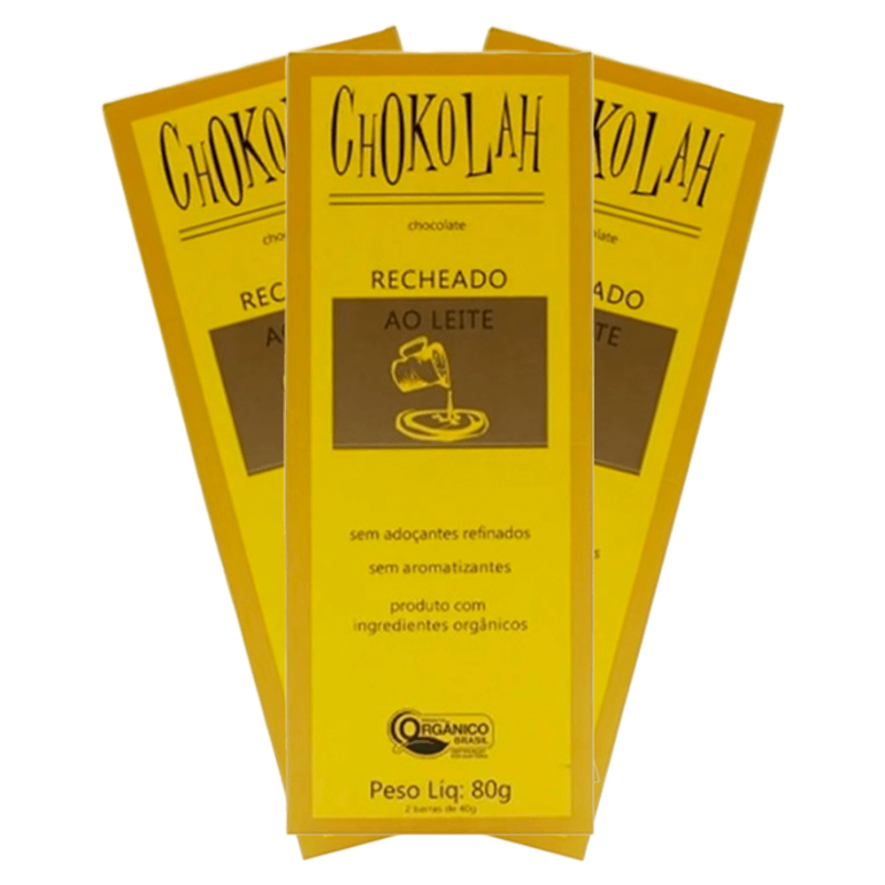 Kit 3X: Chocolate ao Leite 40% Cacau Recheado Orgânico CHoKolaH 80g